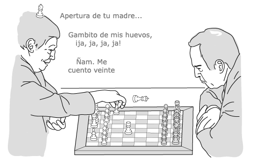 Kárpov y Kaspárov se citan de nuevo para jugar el clásico. Anatoli se presenta borrachísimo, haciendo el gilipollas; Gari aguanta el tipo como puede. Al final tablas.